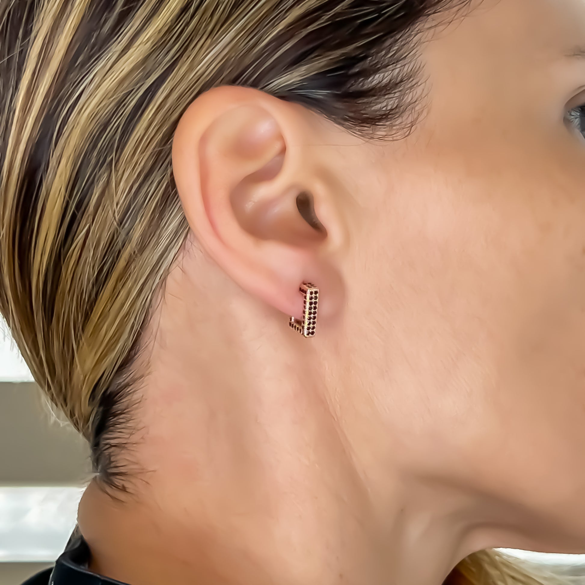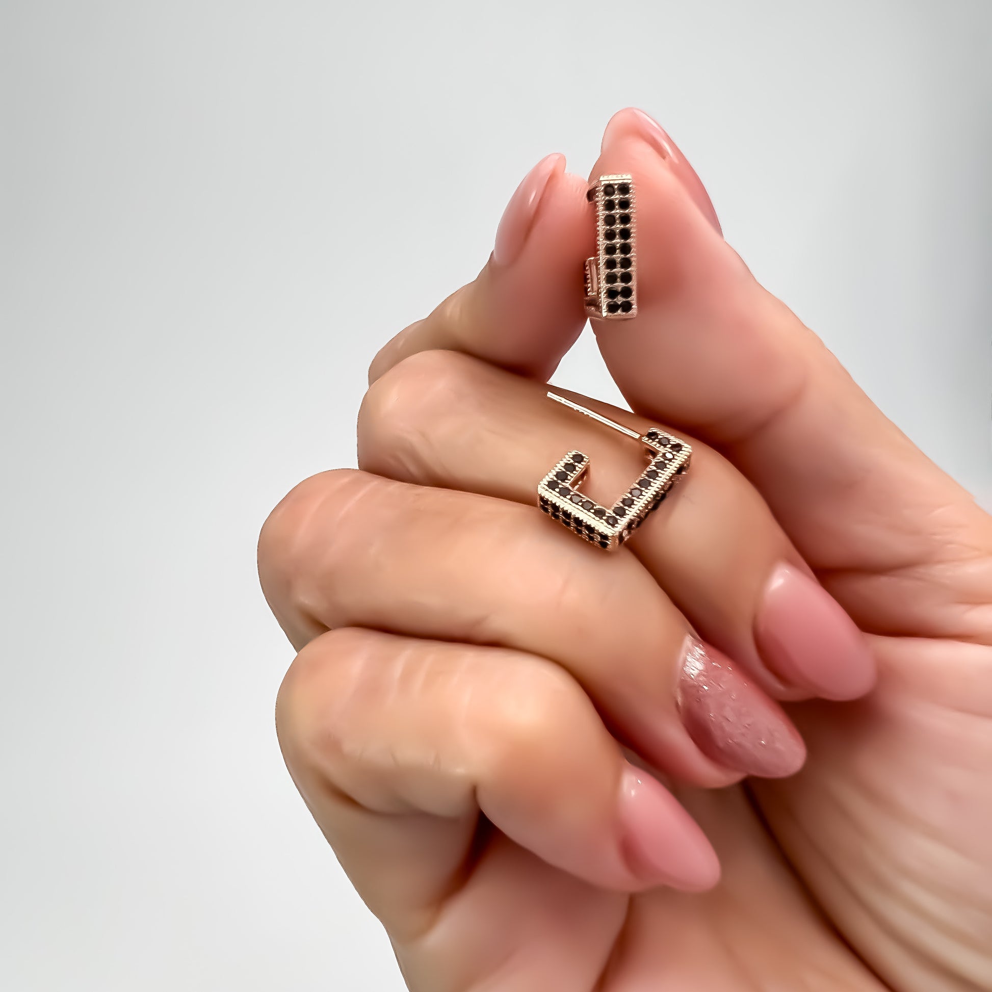Aretes de grecas Rose Gold , con medidas de 12 mm x 8 mm , elaborado en Plata con baño de oro rosa, finamente adornados con micro zirconias.