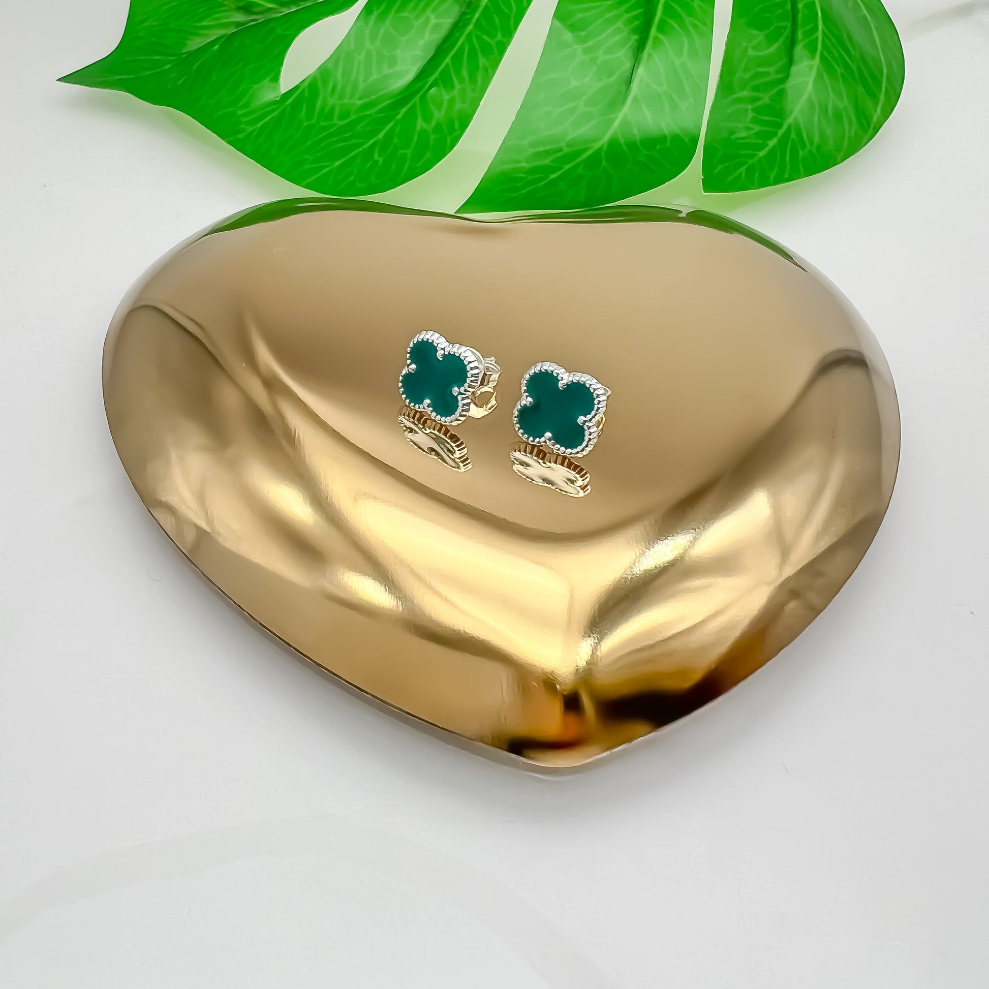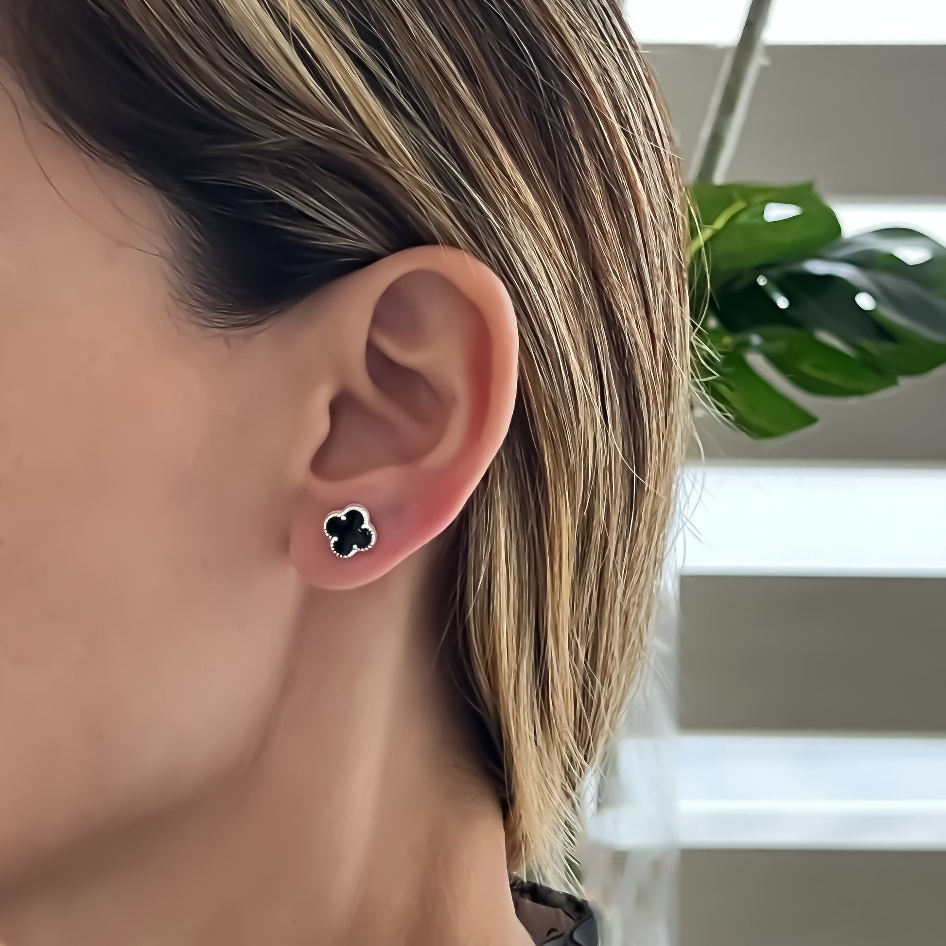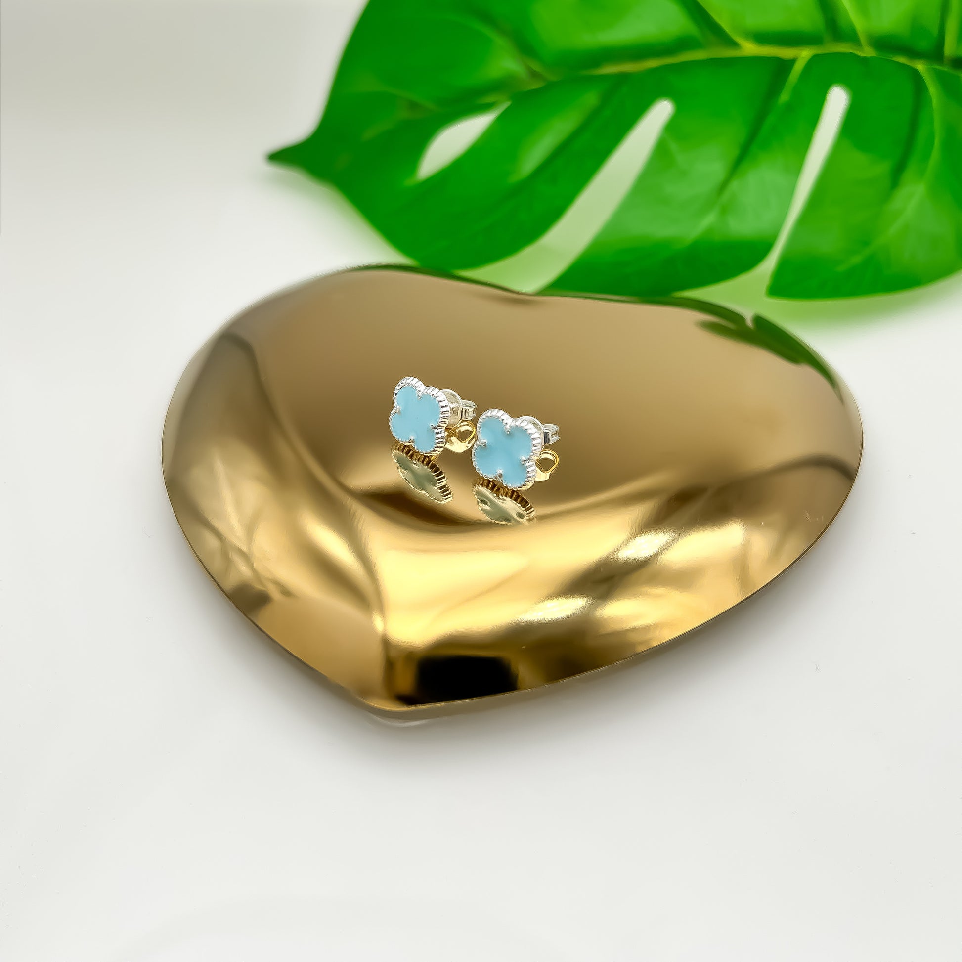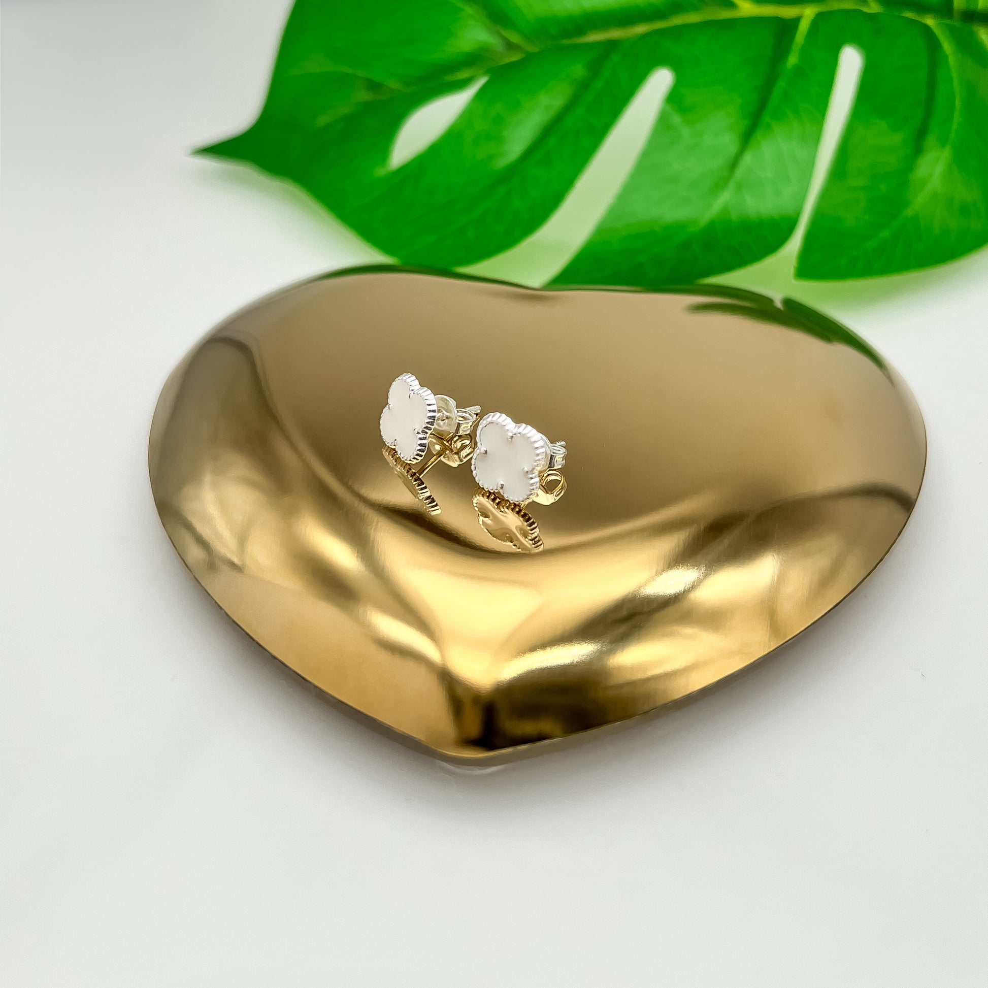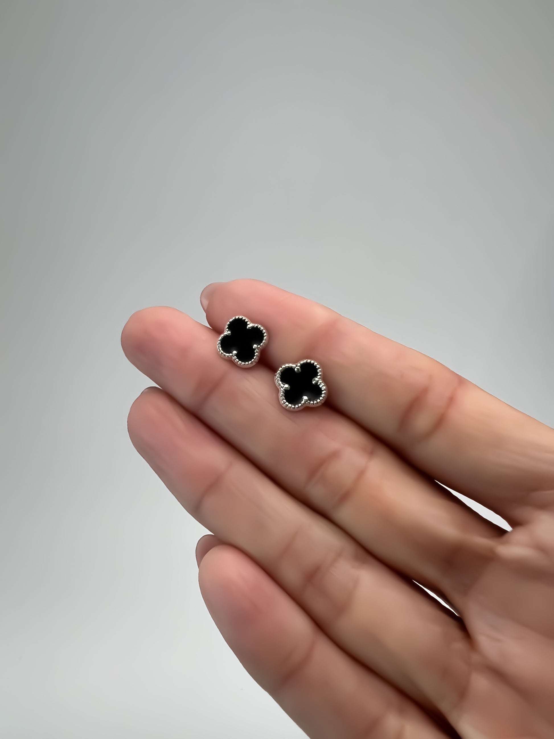 Aretes de Plata mini trébol con medidas de 1cm x 1cm, elaborado en plata.