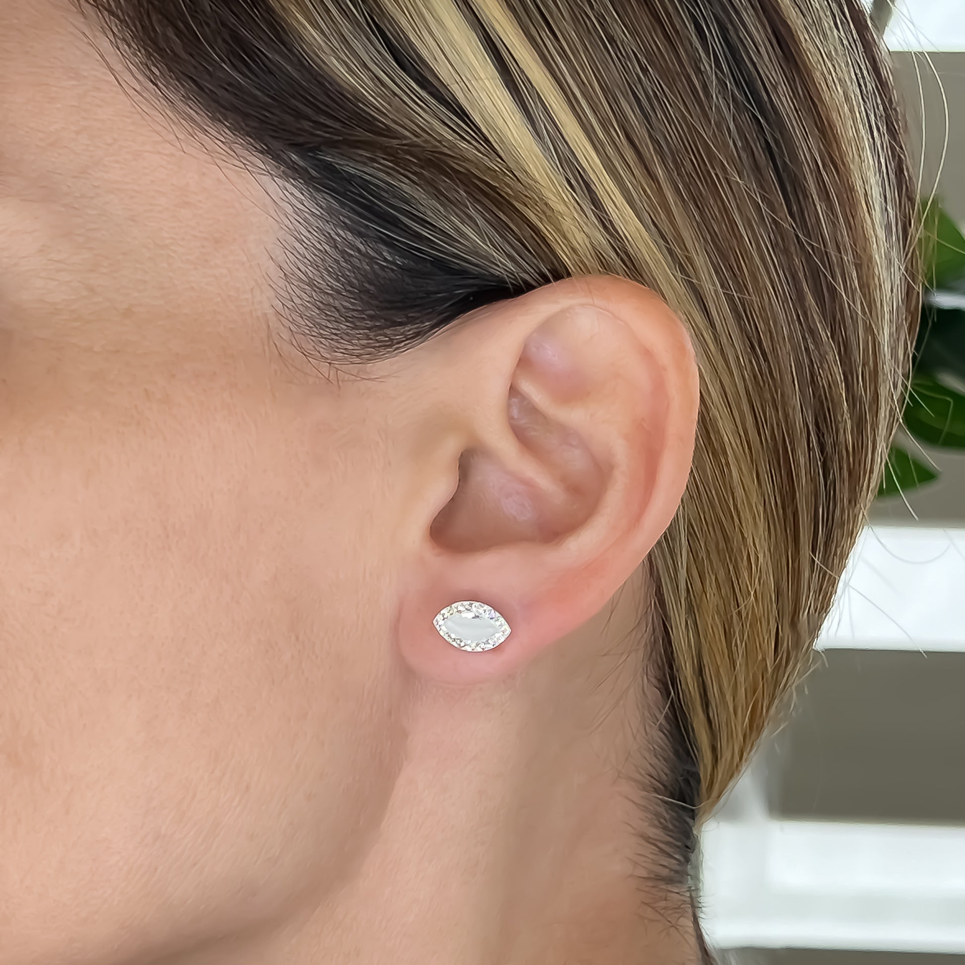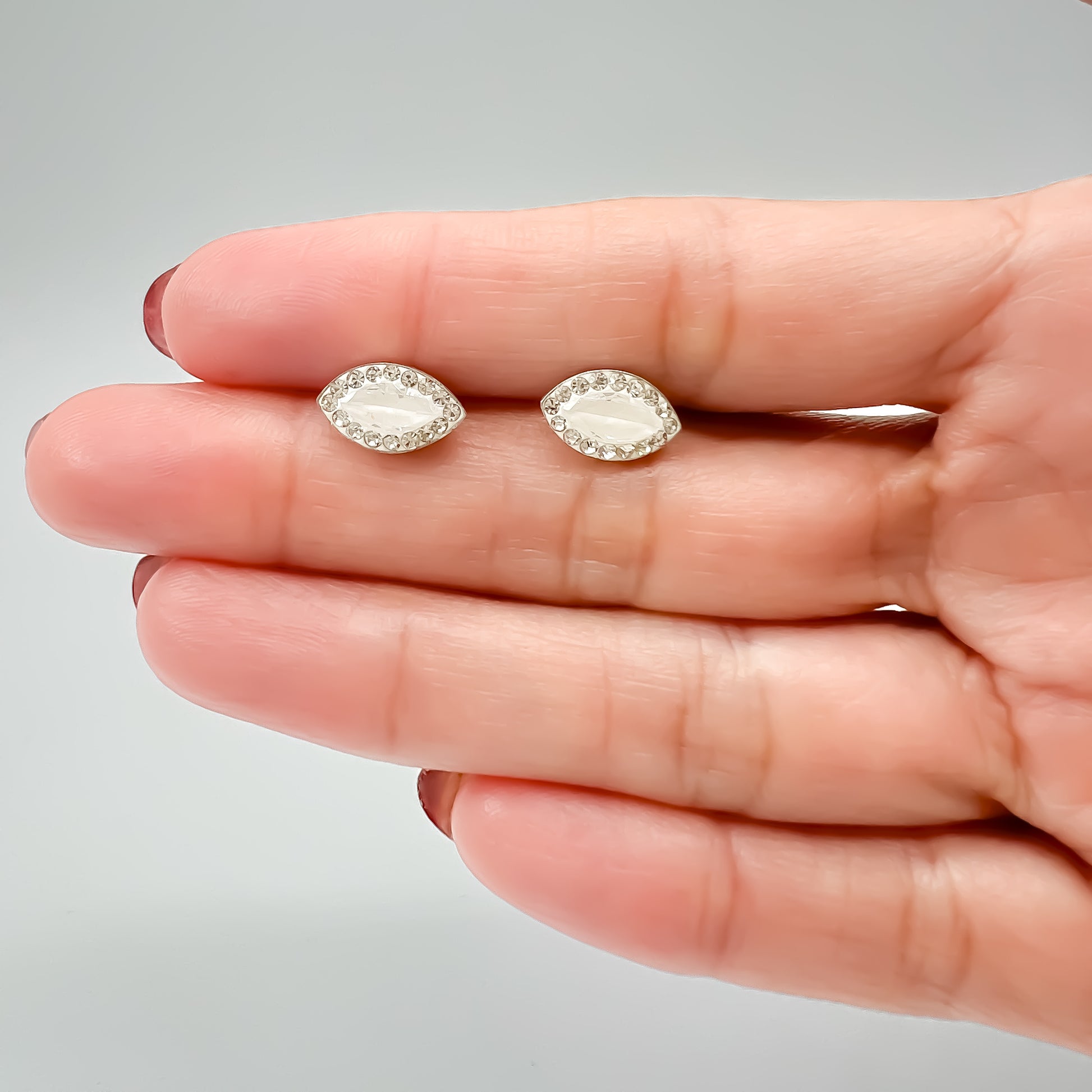 Aretes de Plata ovalo cristal y Zirconias con medidas de 6mm x 1.1cm elaborado en plata. Pensado para quienes aprecian la exclusividad y el buen gusto.
