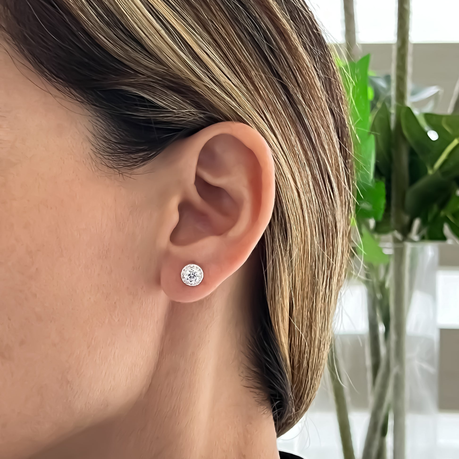 Arete pastel con zirconias circular con medidas de 7mm x 7mm, elaborado en lata. Lindos y sumamente elegantes.