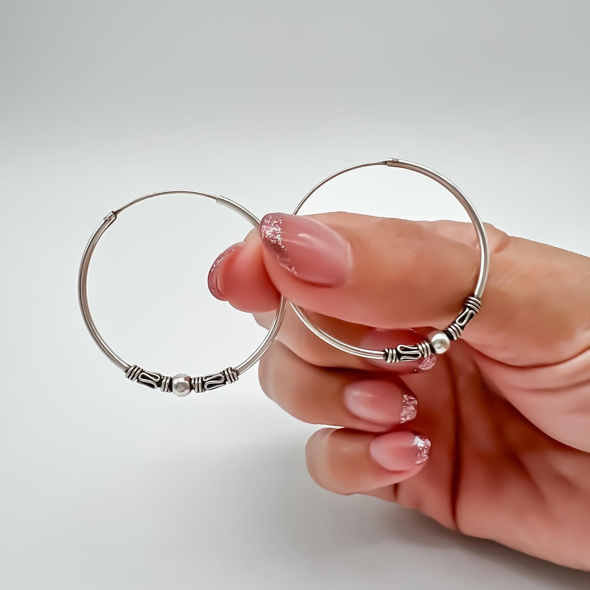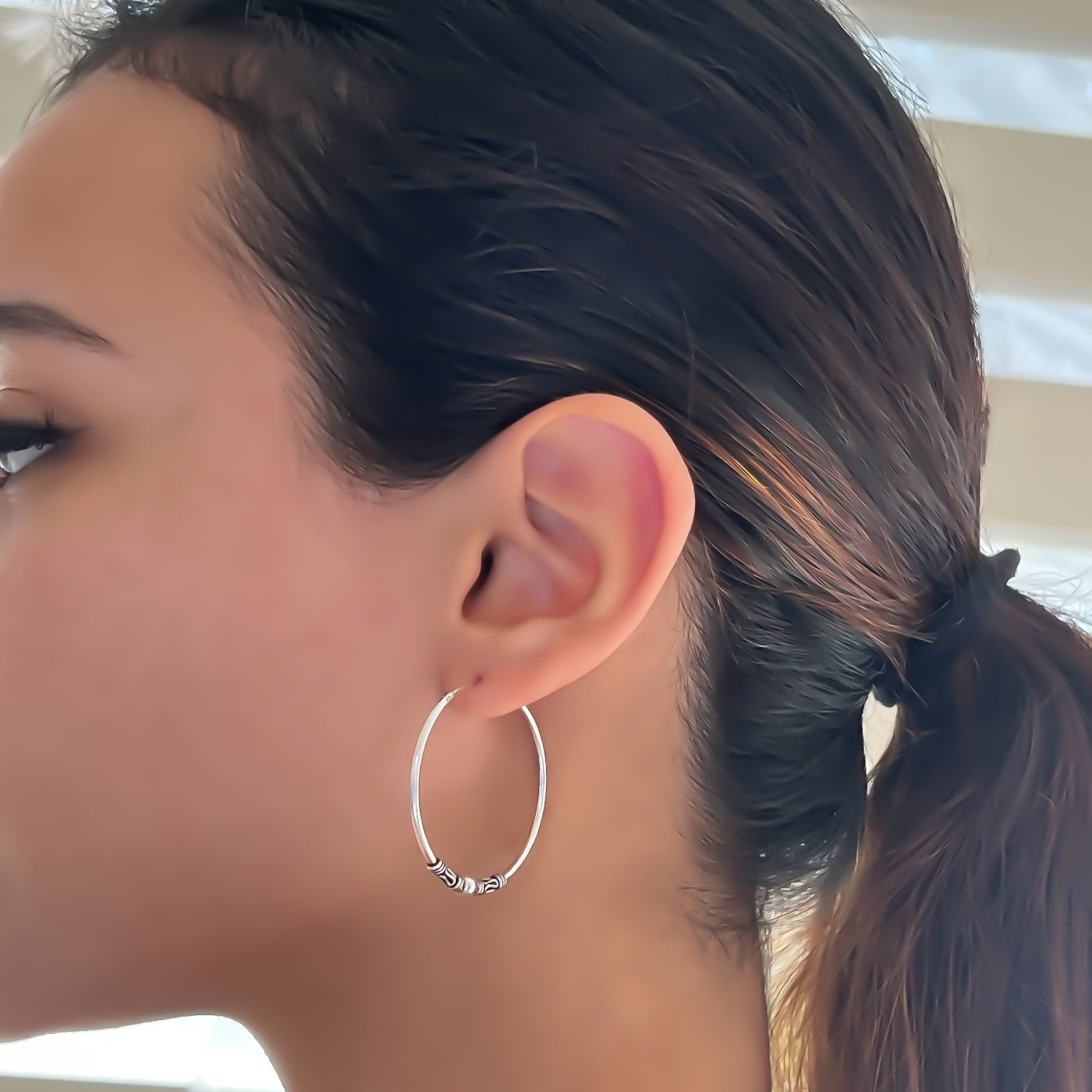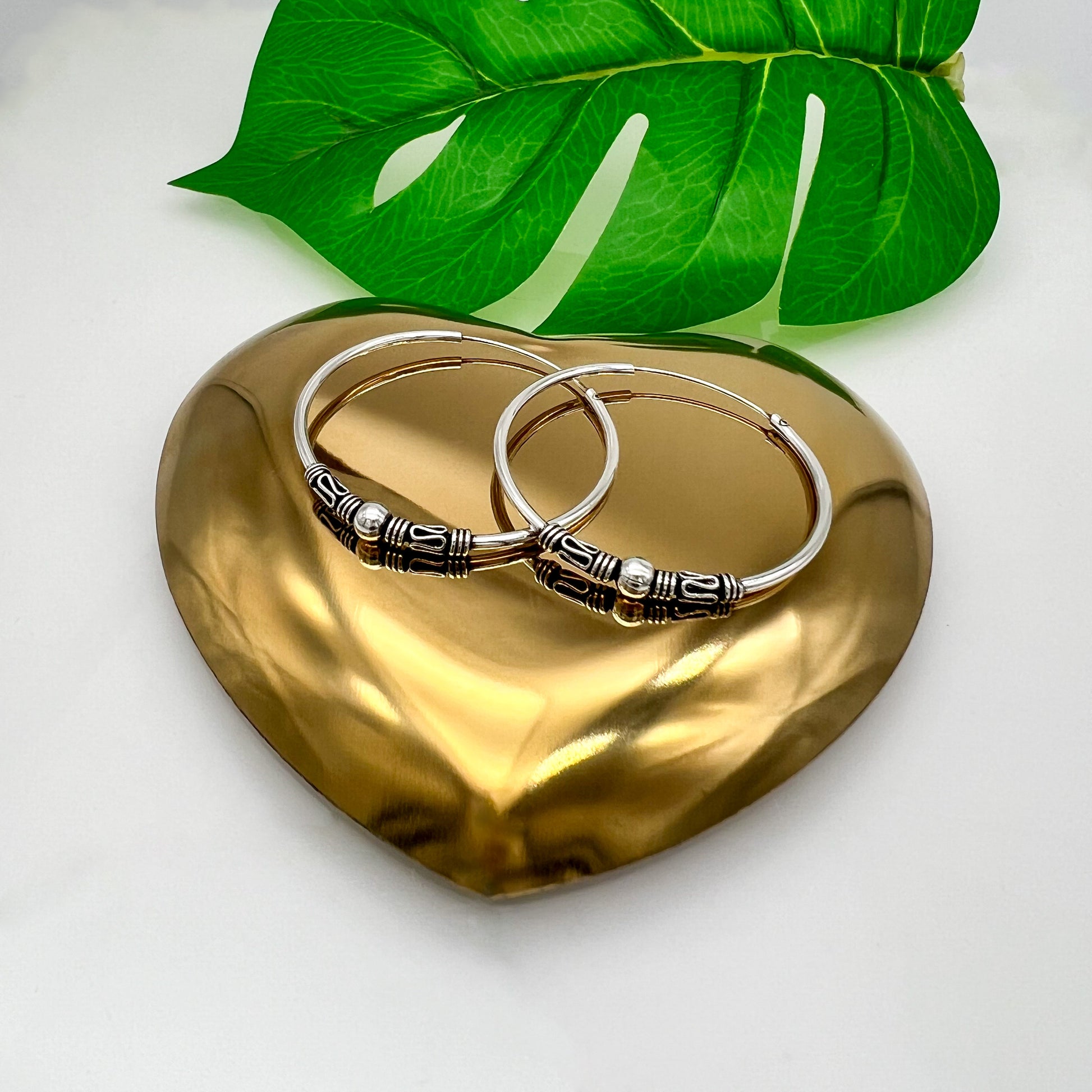 Arracadas de plata Bali con medidas de 3.5 cm de diámetro x 3.5cm, elaborado artesanalmente en plata. Un accesorio que destaca por su diseño único y detallado.