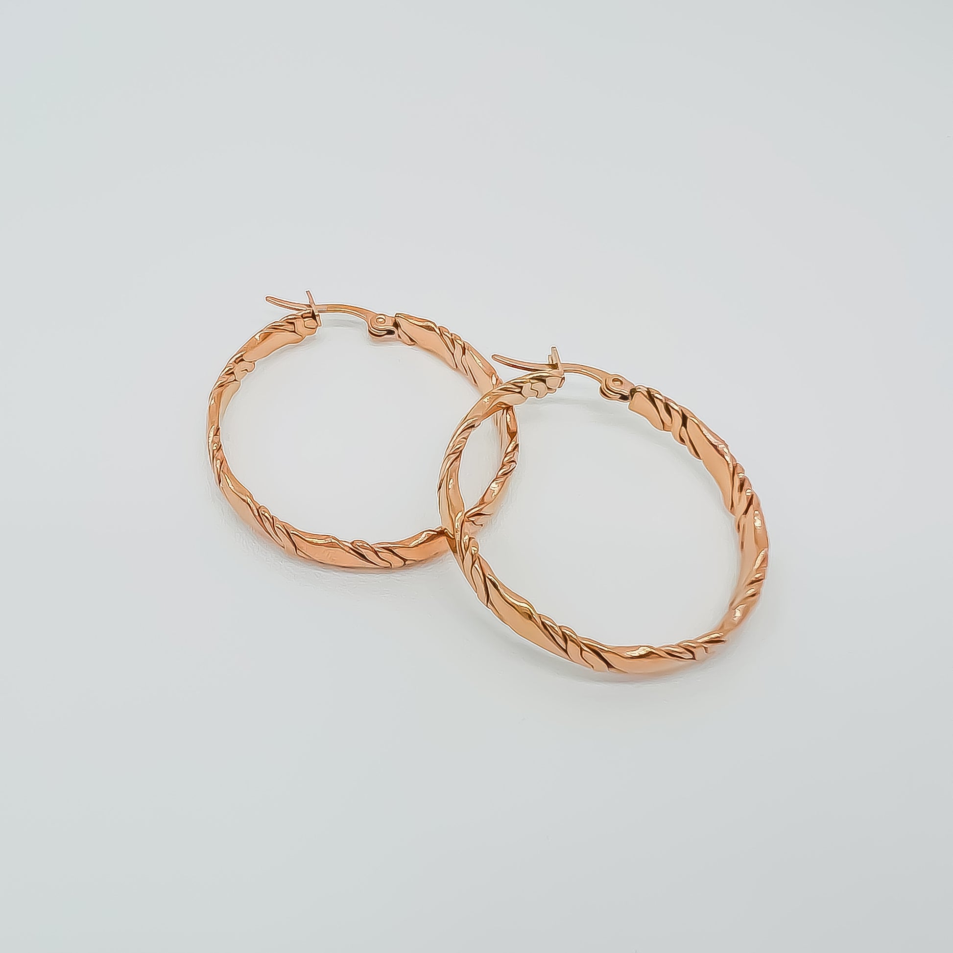 Déjate deslumbrar por nuestra elegante Arracada con grabado. Hecha de una aleación de acero inoxidable, su tono rose gold aporta distinción y la hace relevante en cualquier ocasión. Su grabado la hace lucir diferente a cualquier otra, asegurando un toque único y sofisticado. ¡Haz que tus accesorios sean una declaración de estilo!