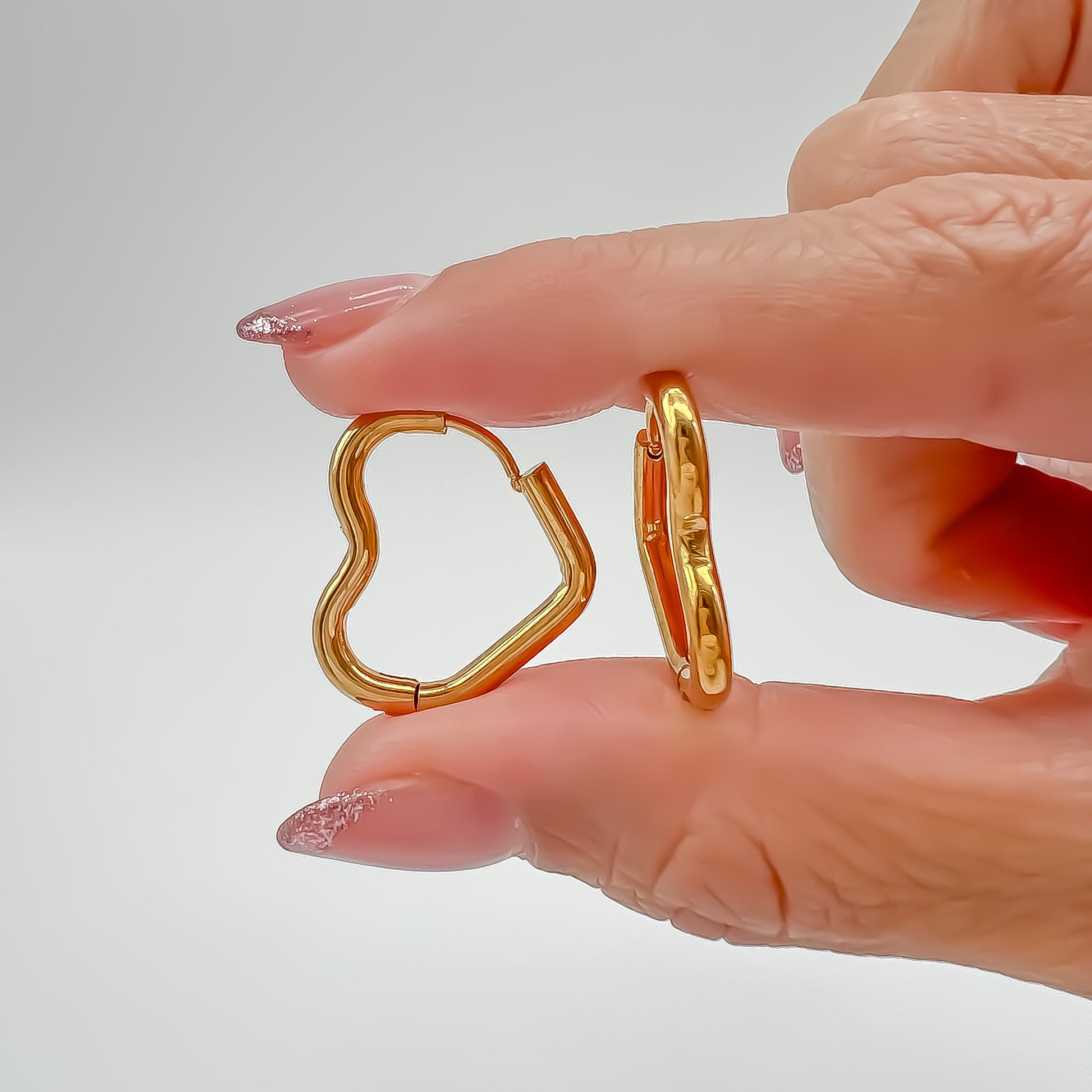 Estas Arracadas de corazón son perfectas para expresar lo que hay en ti. Con un hermoso diseño de acero inoxidable dorado y 2 cm de diámetro, son una opción elegante y duradera. Muestra tu estilo y amor con estas lindas arracadas de corazón.
