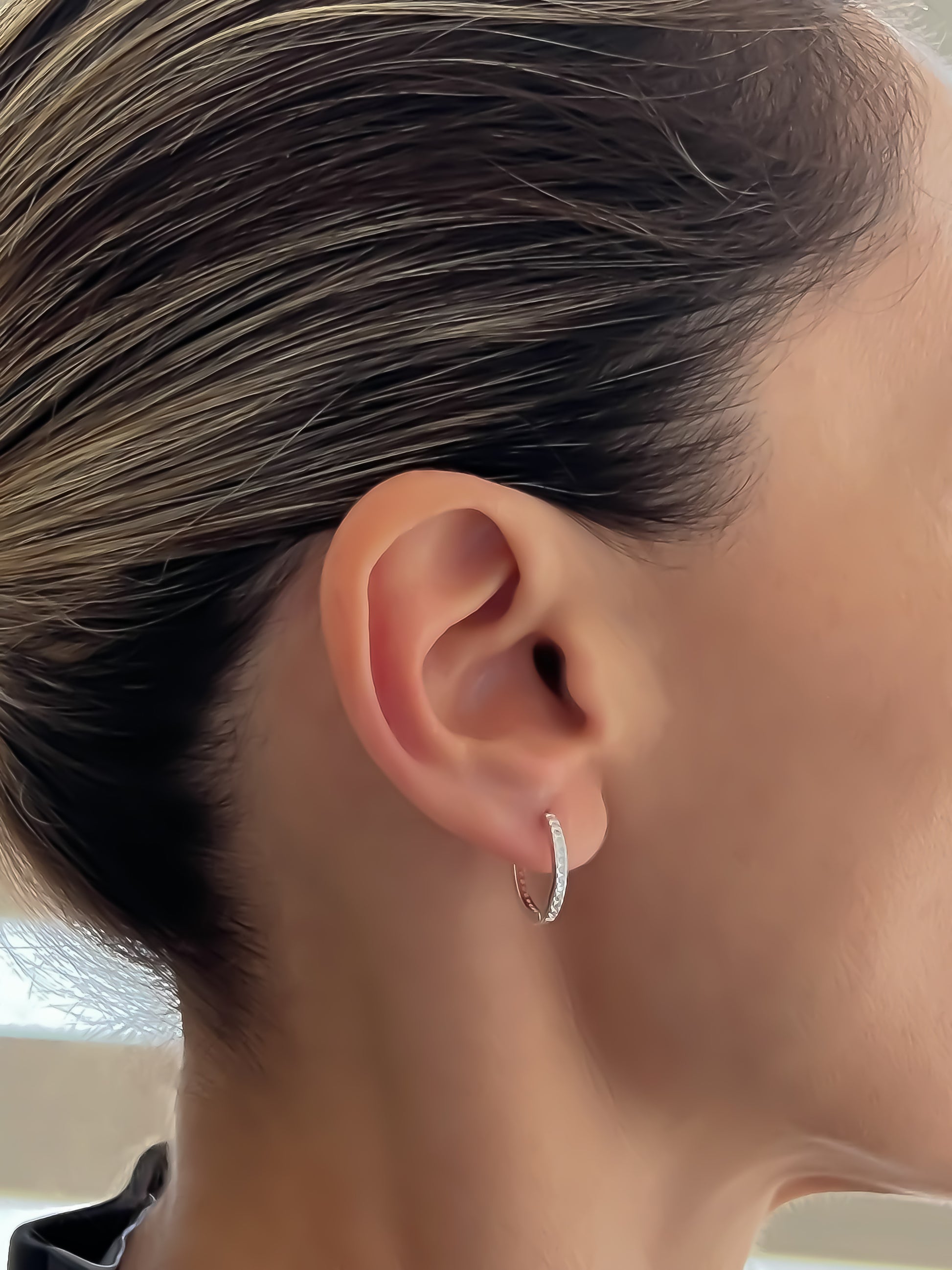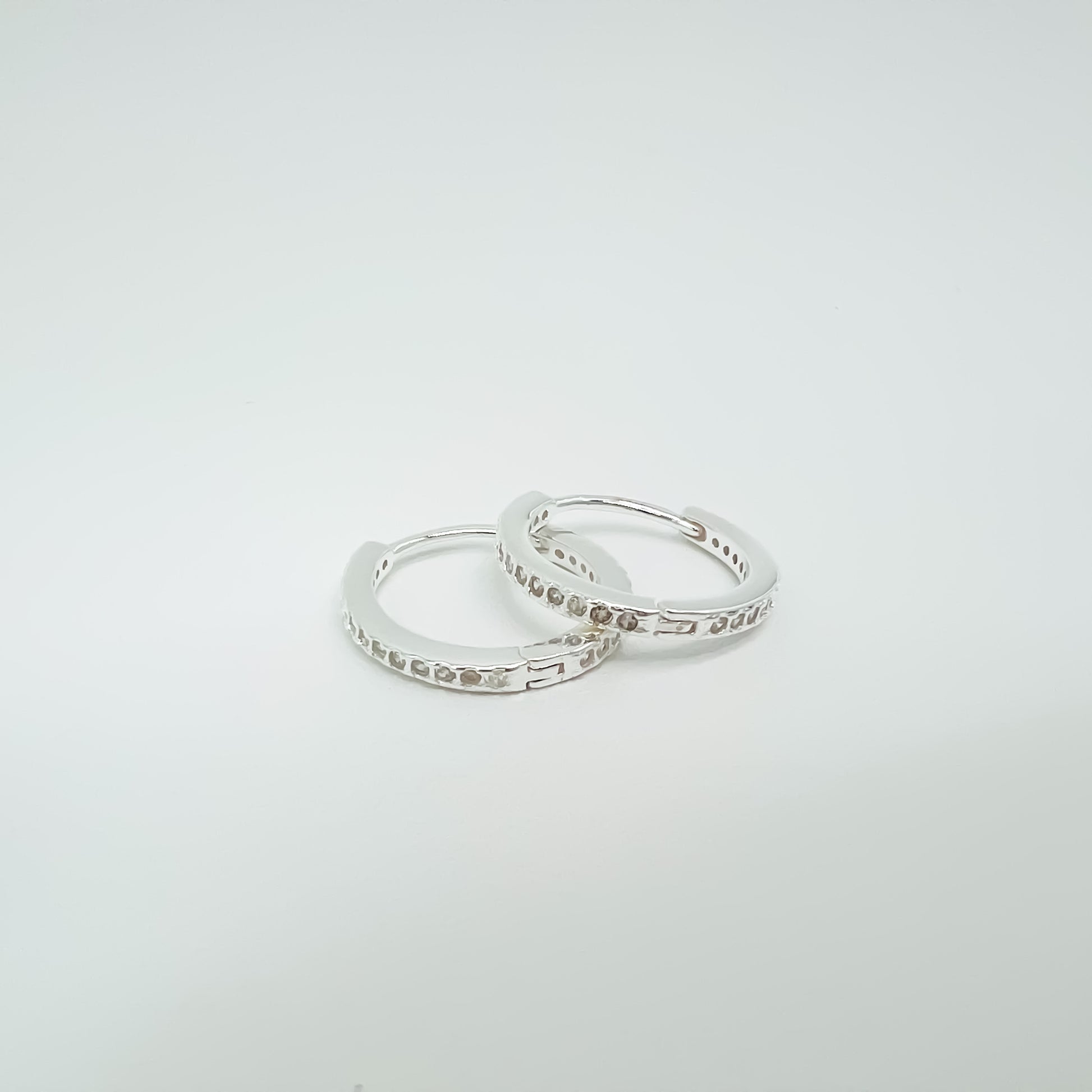 Arracada microcirconias con medidas de 16 mm de diámetro x 16 mm diámetro, elaborado en plata. Una pieza que combina elegancia y modernidad para cualquier ocasión.
