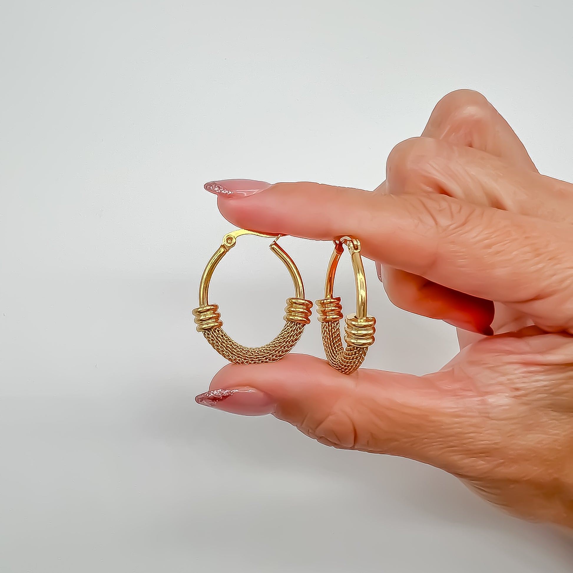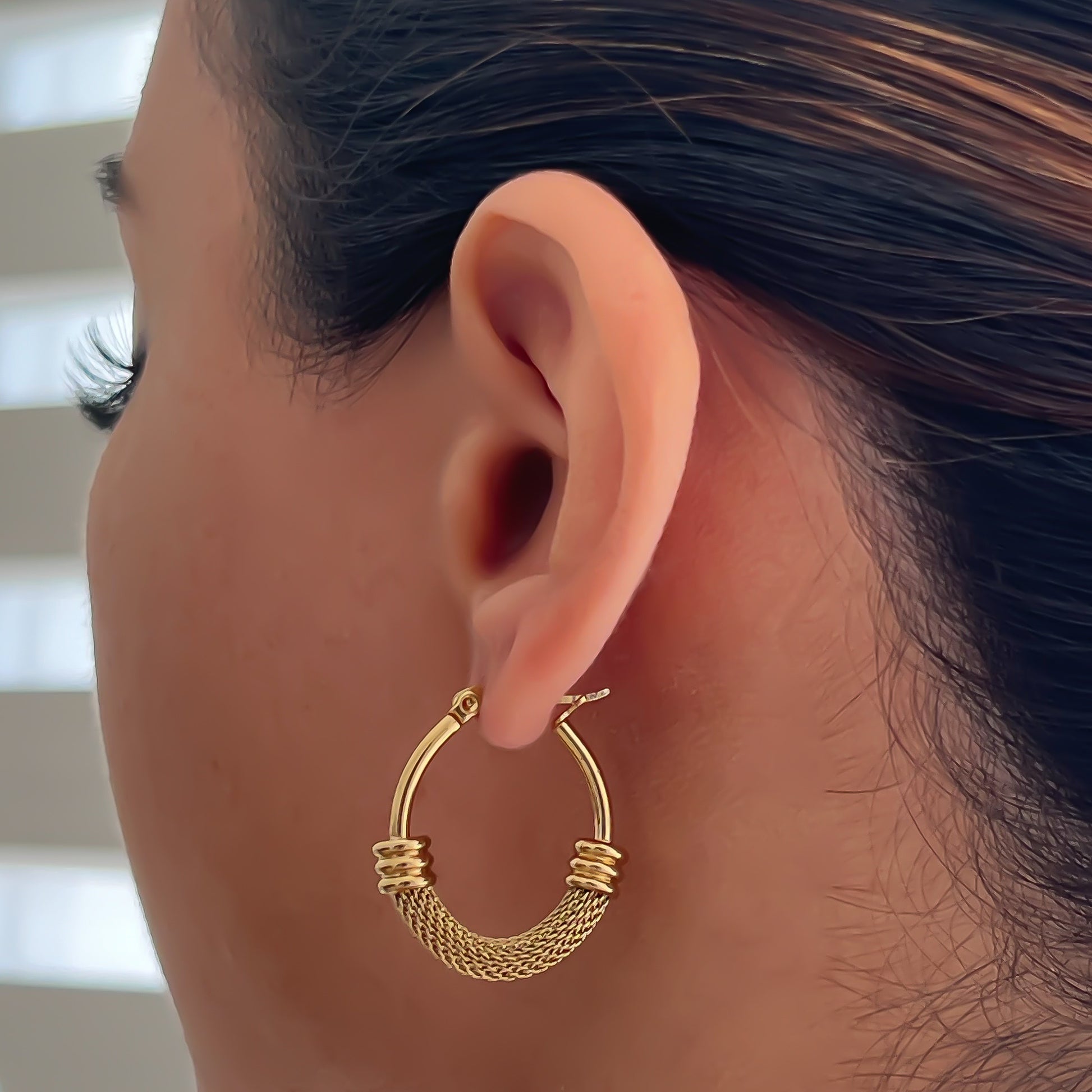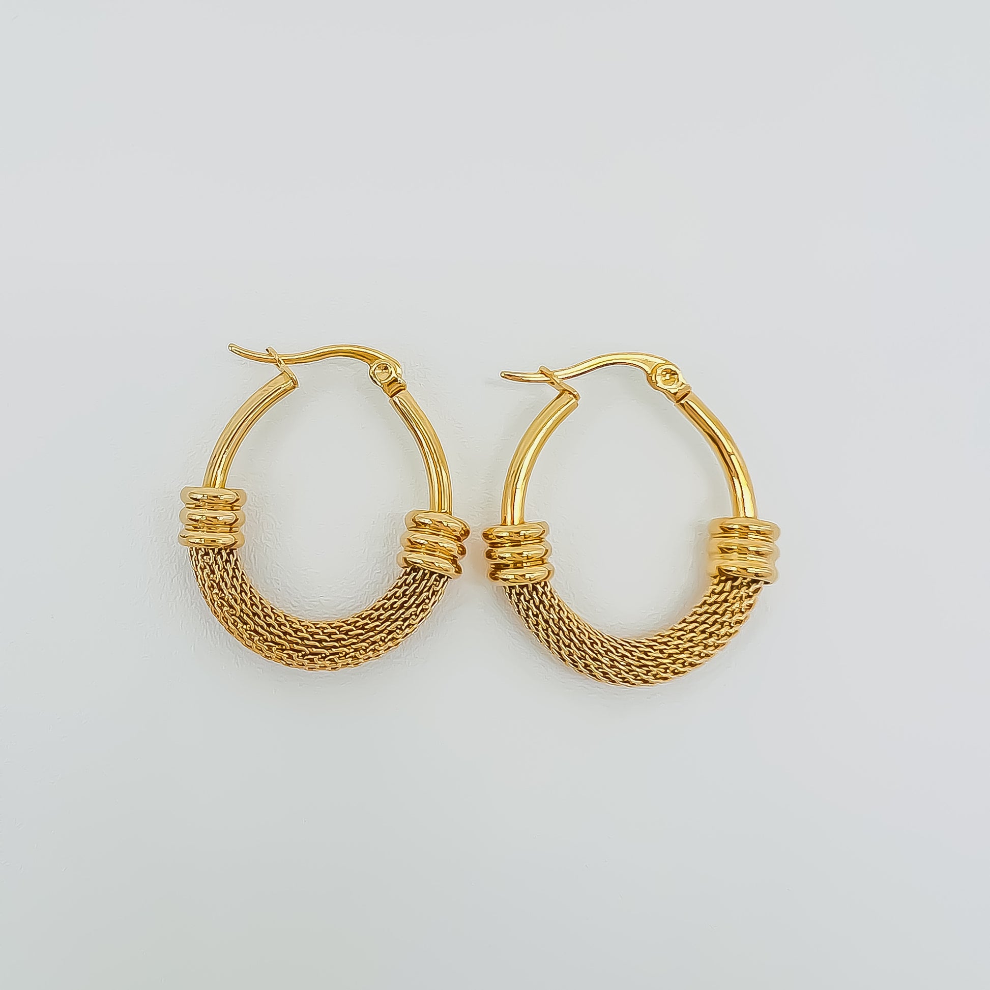 Descubre la elegancia en cada movimiento con nuestras Arracadas mesh doradas. Su gran diseño singular te hará lucir guapa en cualquier ocasión. Hechas con materiales de primera calidad, estas arracadas son la elección perfecta para añadir un toque de estilo a tu outfit con su glamuroso acabado en mesh.