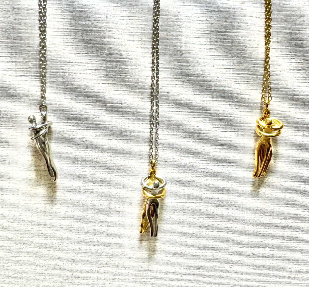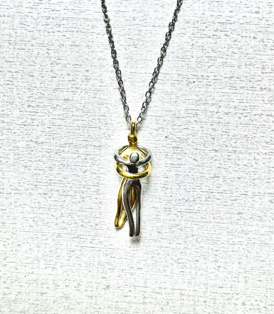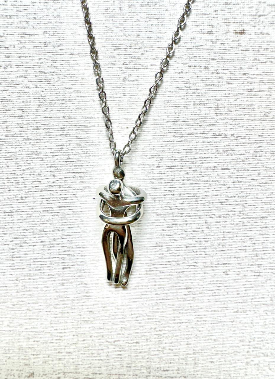 Este collar de acero inoxidable presenta un diseño que simboliza el abrazo de una pareja, representando la unión y el compromiso. Fabricado con materiales resistentes, ofrece durabilidad y un acabado elegante que mantiene su brillo con el tiempo. Ideal para quienes buscan un accesorio significativo que combine estilo y profundidad emocional. Perfecto para regalar en ocasiones especiales o para uso diario, este collar es una expresión sutil y sofisticada del vínculo afectivo entre dos almas que se aman.