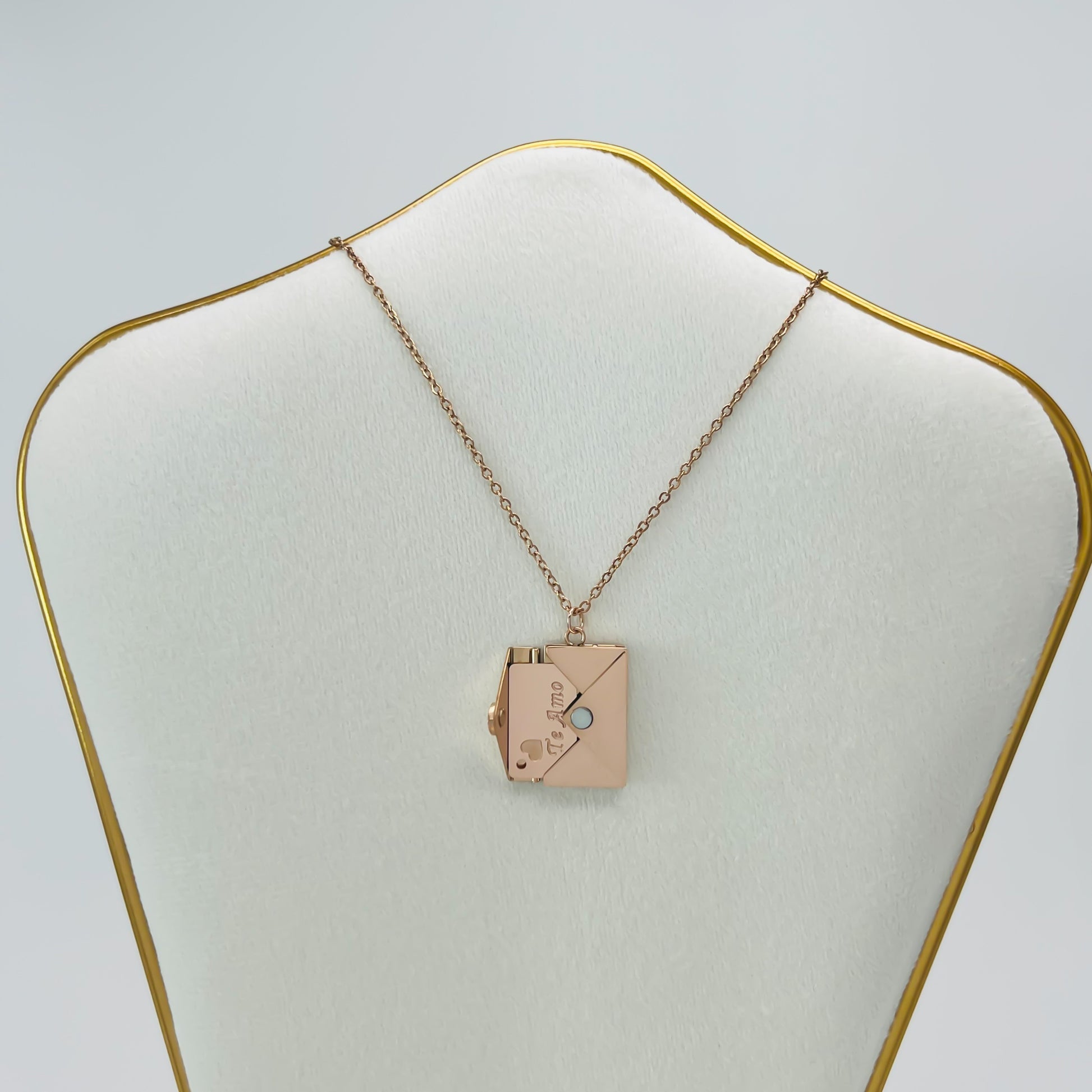 El collar carta de amor es el regalo perfecto para expresar tu amor de manera inolvidable. Con su detalle cute y su material duradero de acero inoxidable, esta collar de 90 cm de largo será un símbolo de tu amor eterno. ¡Haz que cada día sea especial con este detalle único!