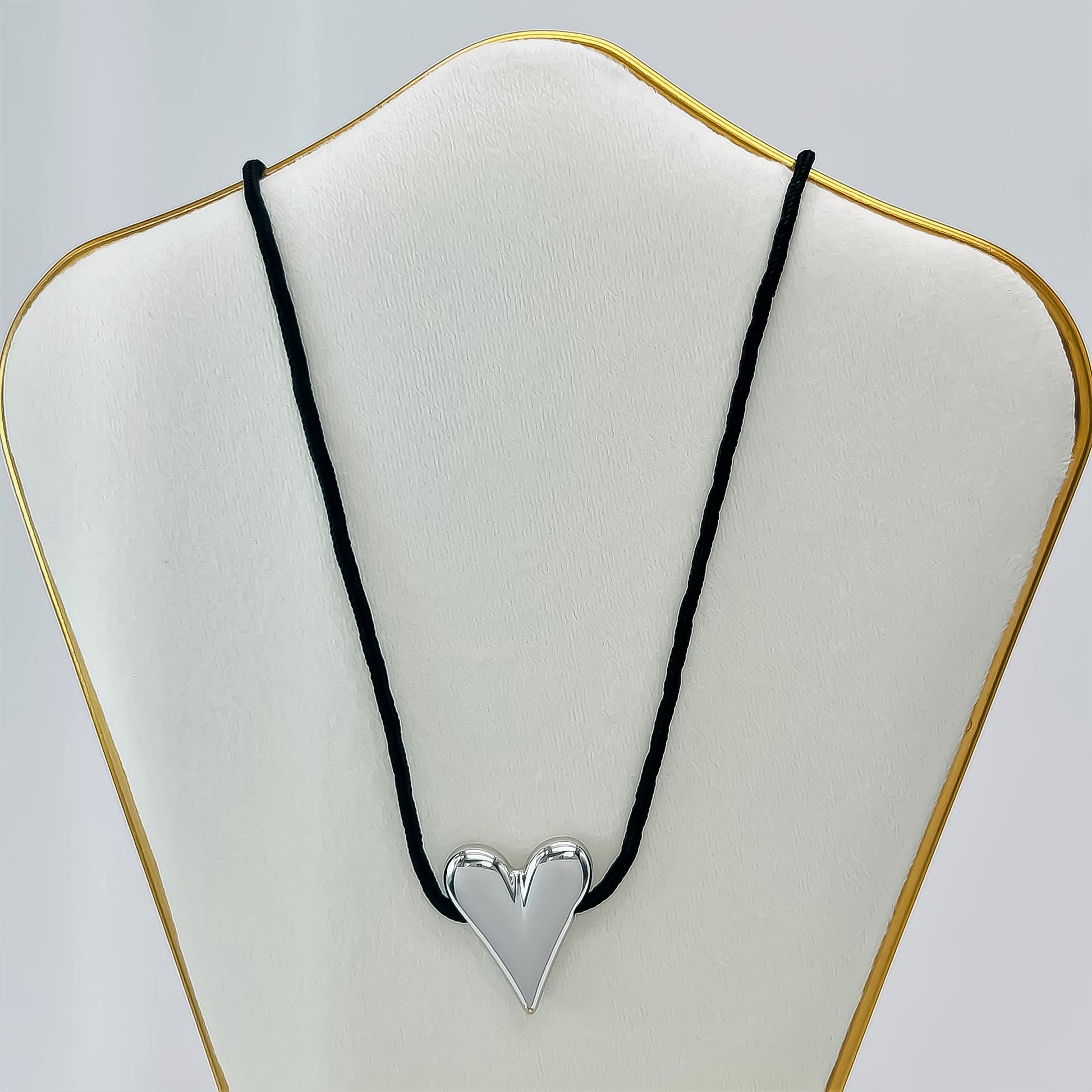 Este llamativo collar de corazón es el complemento perfecto para aquellos que buscan un estilo audaz y moderno. Con su diseño de acero brillante y cordon, este collar luce auténtico y elegante. Hecho con acero inoxidable de alta calidad, es duradero y resistente al desgaste. Perfecto para cualquier ocasión.