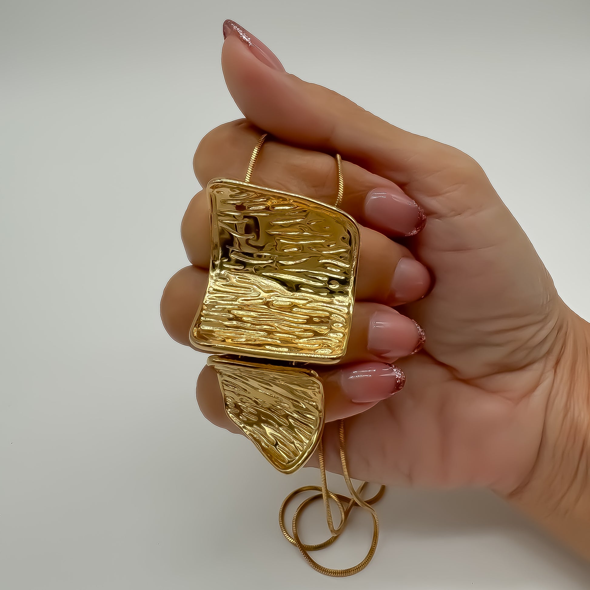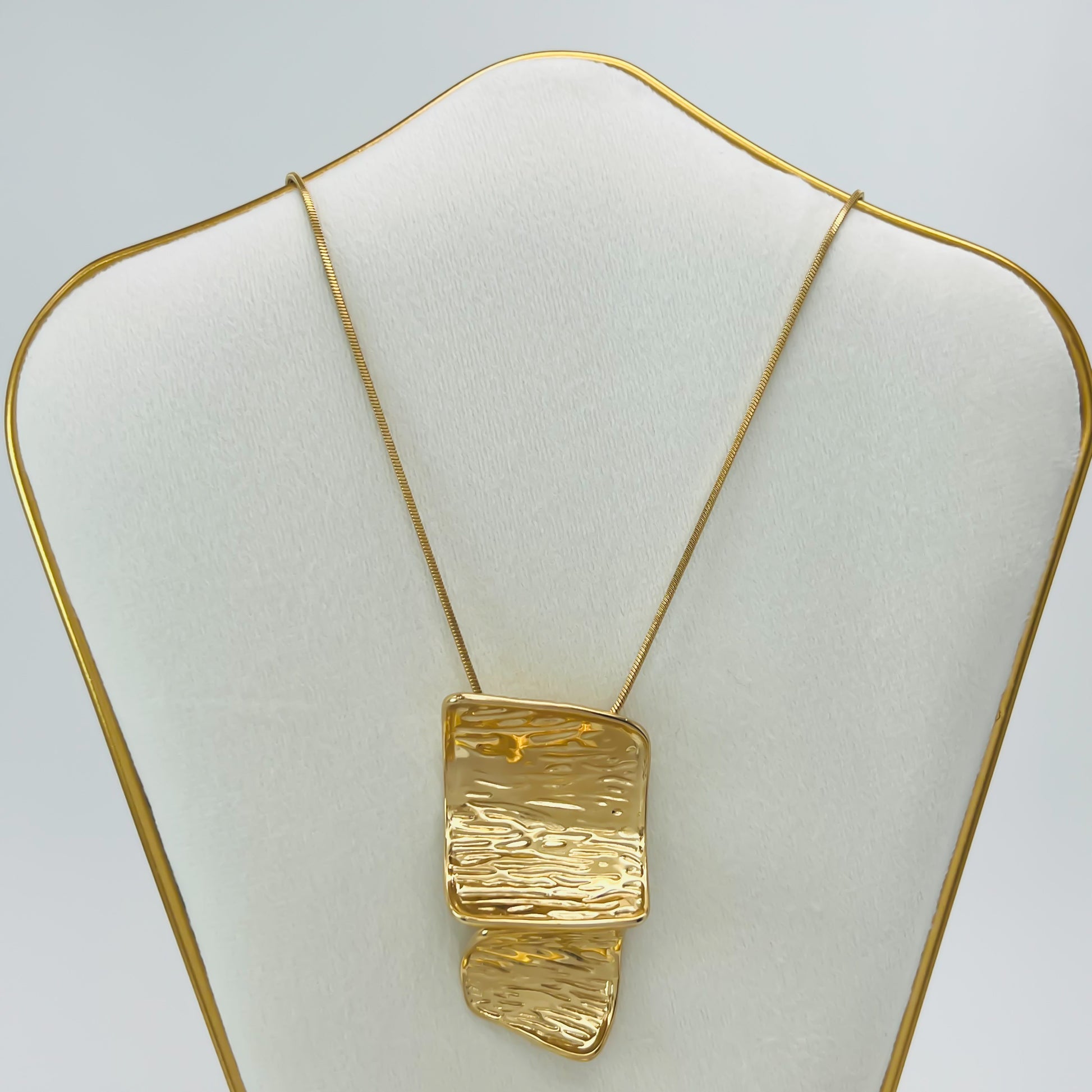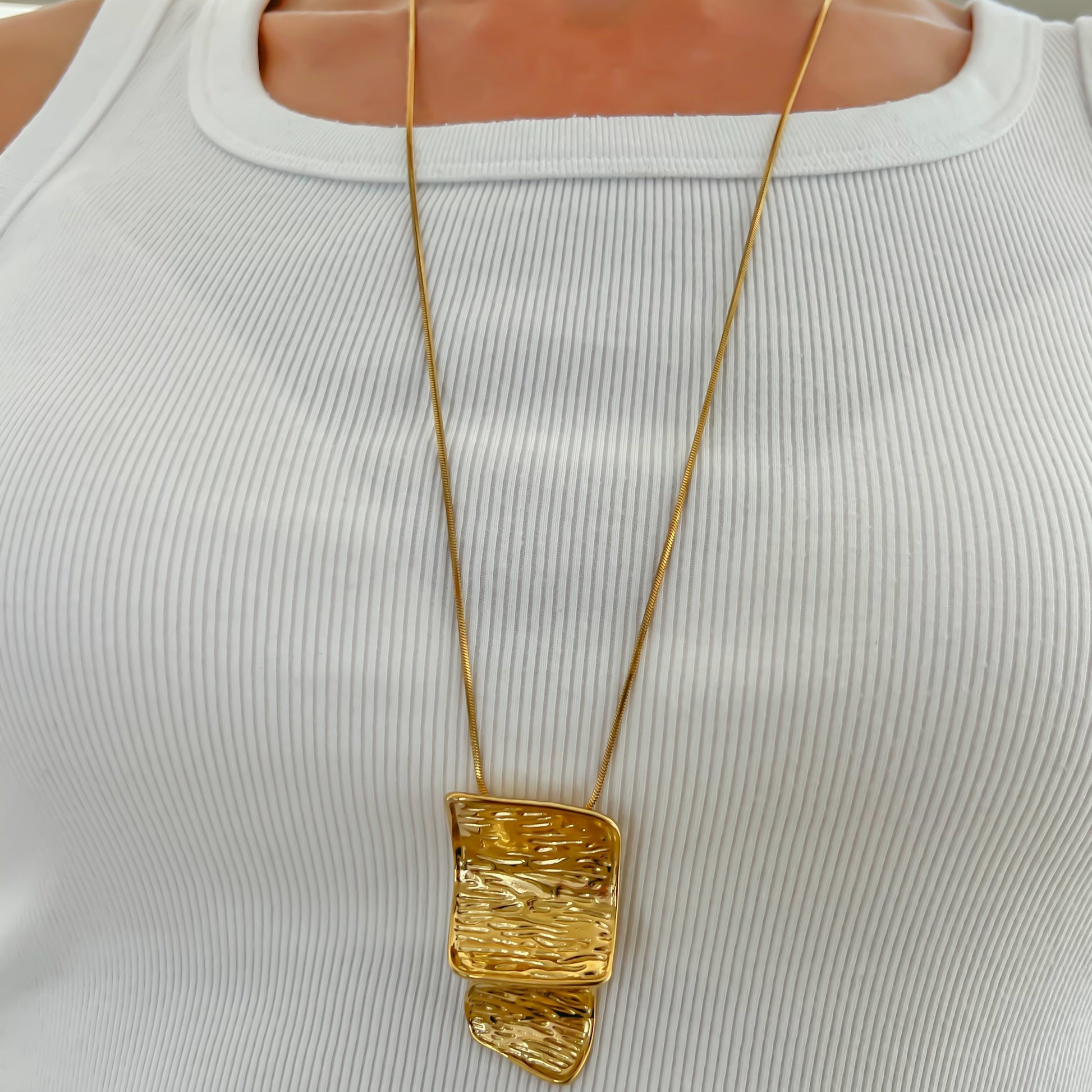 Este collar doble placa con textura es perfecto para añadir elegancia y distinción a tu outfit. Hecho de acero inoxidable, su diseño dorado y largo lo hacen fresco y sofisticado. ¡Luce con estilo y sin esfuerzo con este collar de alta calidad!
