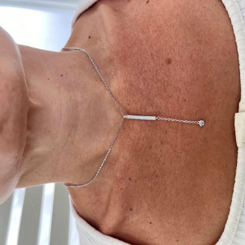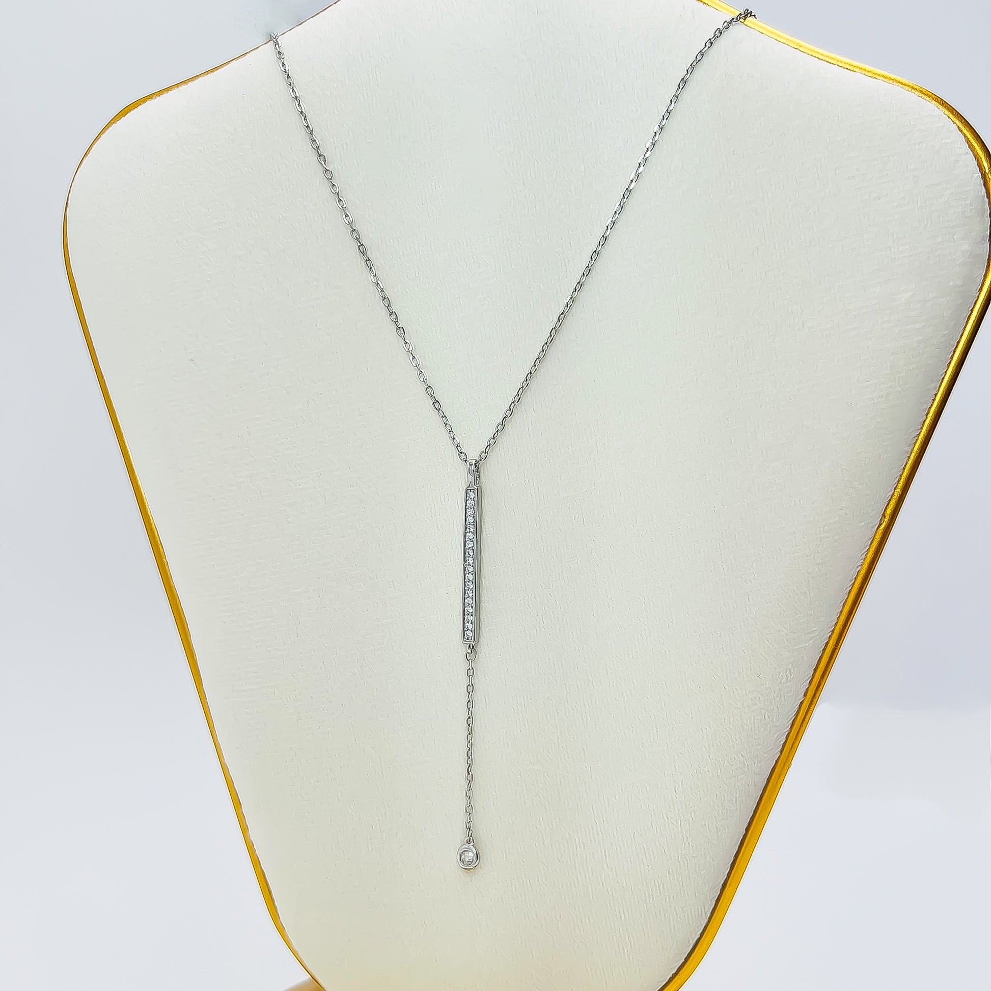 Dale un toque de elegancia a tus eventos especiales y noches de gala con este hermoso collar. Fabricado en delicada y brillante plata de ley, este accesorio es perfecto para quienes aprecian la sofisticación y el refinamiento. cuenta con baño de rodio para mayor protección y durabilidad