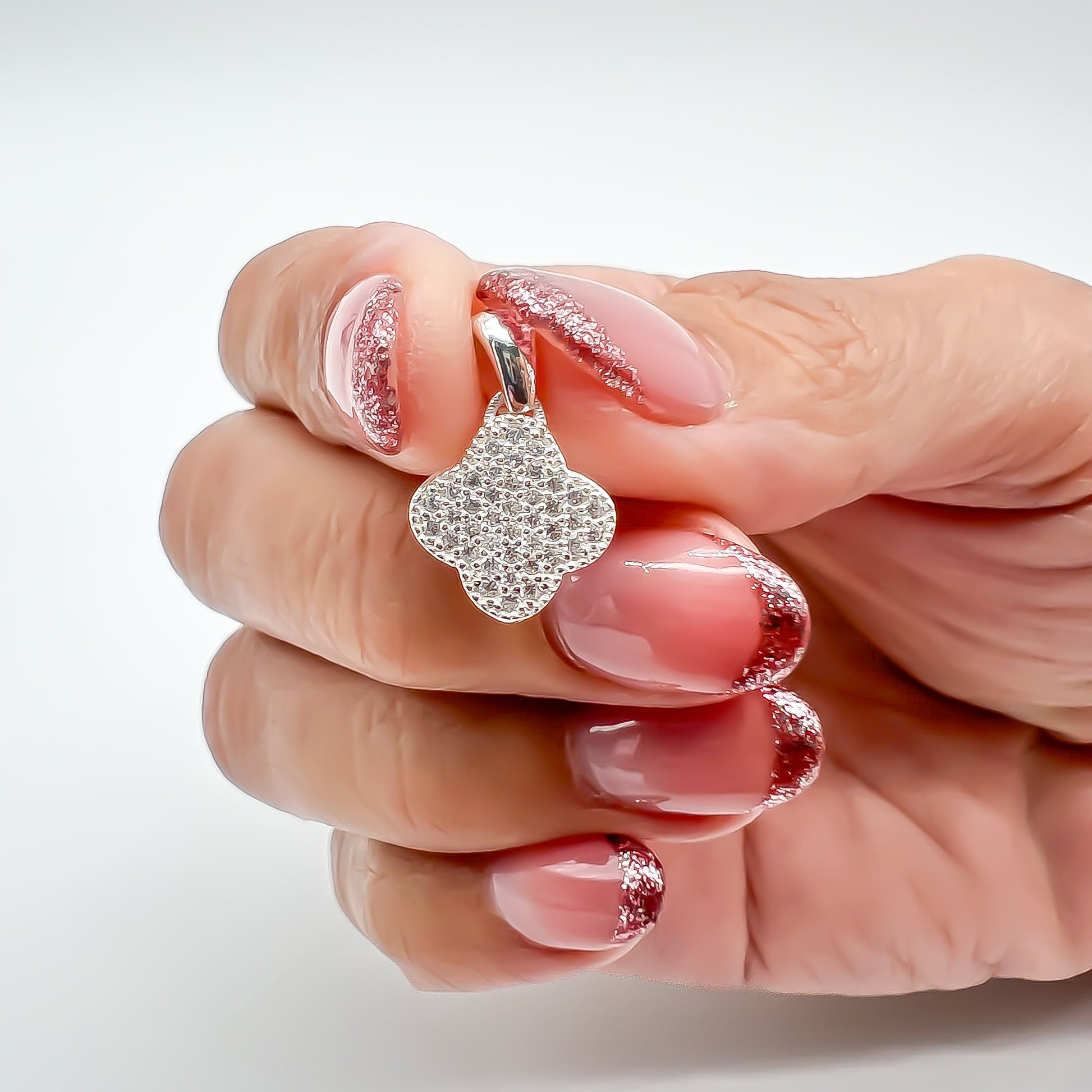 Este dije trébol de micro zirconias es pequeño pero vistoso y elegante. Con sus brillos y zirconias, es una pieza de suerte que brilla en plata. Llévalo contigo para atraer buenas energías y destacar con estilo. ¡Un accesorio imprescindible para cualquier ocasión!