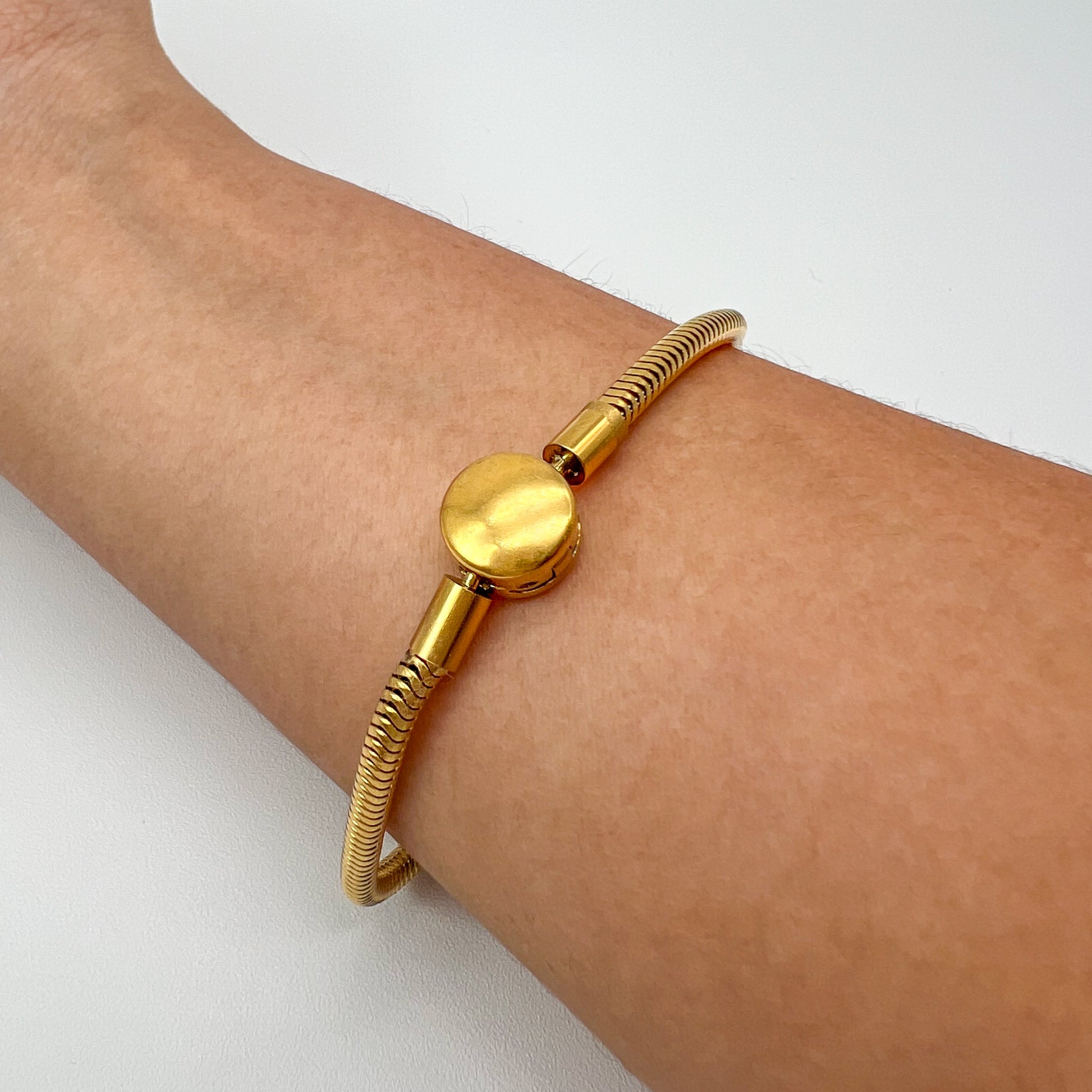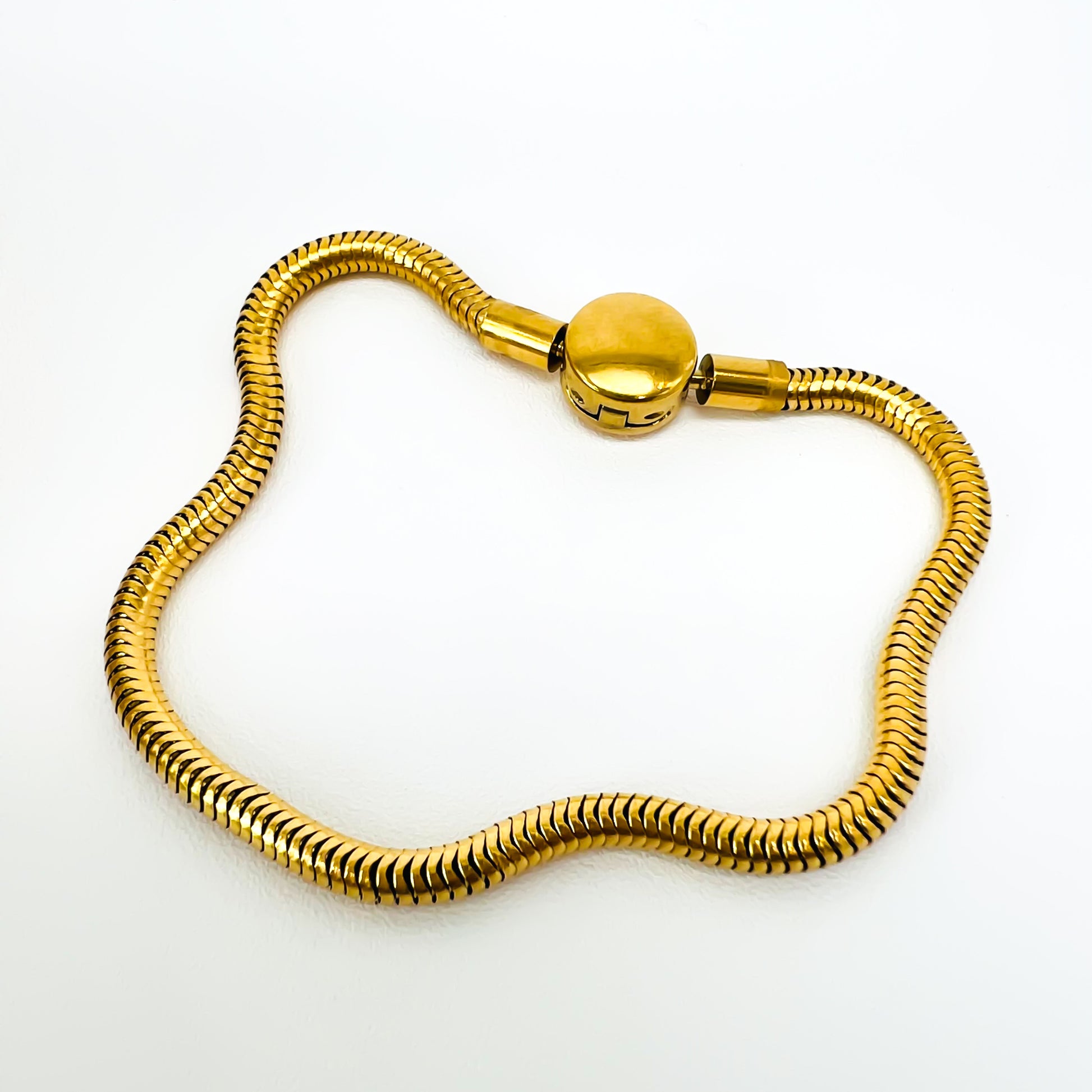 La pulsera de acero con cadena serpiente es un básico que no puede faltar en tus accesorios. Su material de acero dorado le brinda un toque de tendencia y siempre luce bien. ¡No pierdas la oportunidad de lucir elegante y a la moda con esta pulsera!
