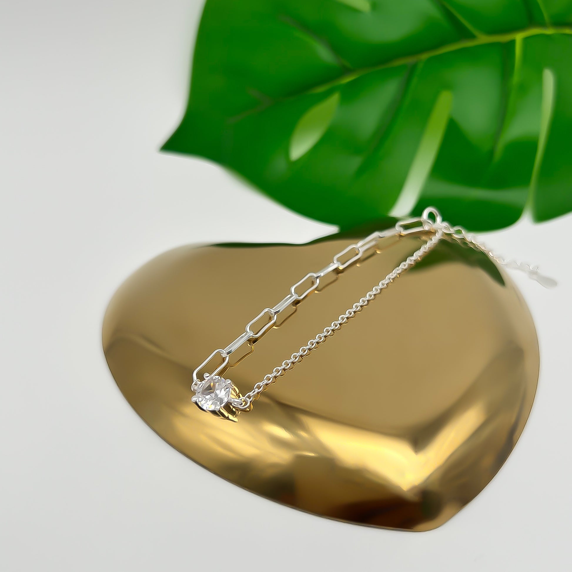 Pulsera de plata eslabón mixto con Zirconia con un largo de 20CM, elaborado en plata. Un toque brillante que no puede faltar en tu colección.