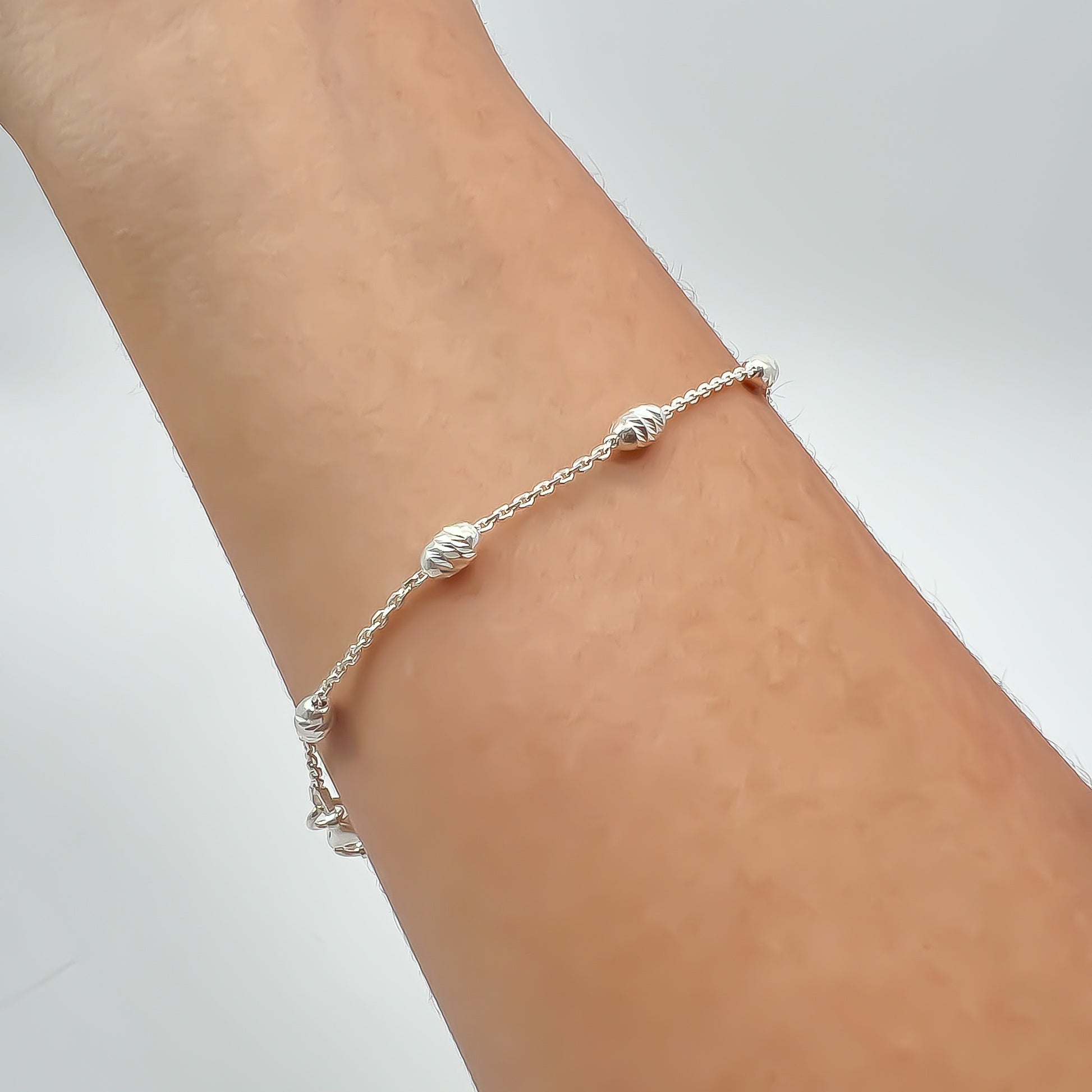 Esta pulsera de plata con ovalitos diamantados es una verdadera joya. Sus hermosos destellos y brillos son perfectos para llamar la atención en cualquier ocasión. Además, sus ovalos facetados le añaden un toque de elegancia único. No pasarás desapercibida con esta pulsera en tu muñeca. ¡Hazla parte de tu colección de joyas ahora!