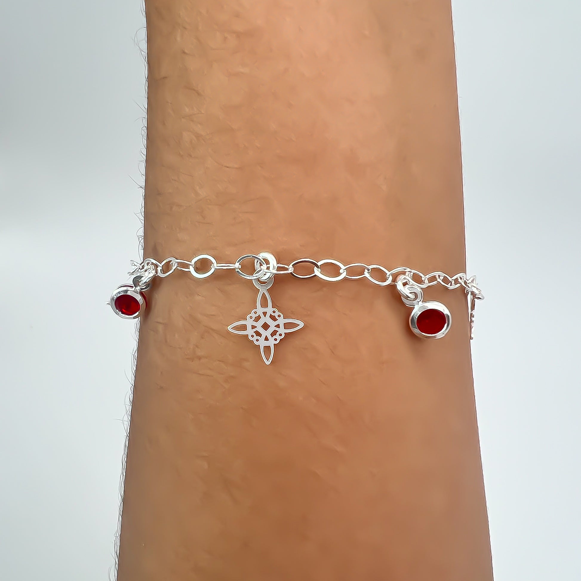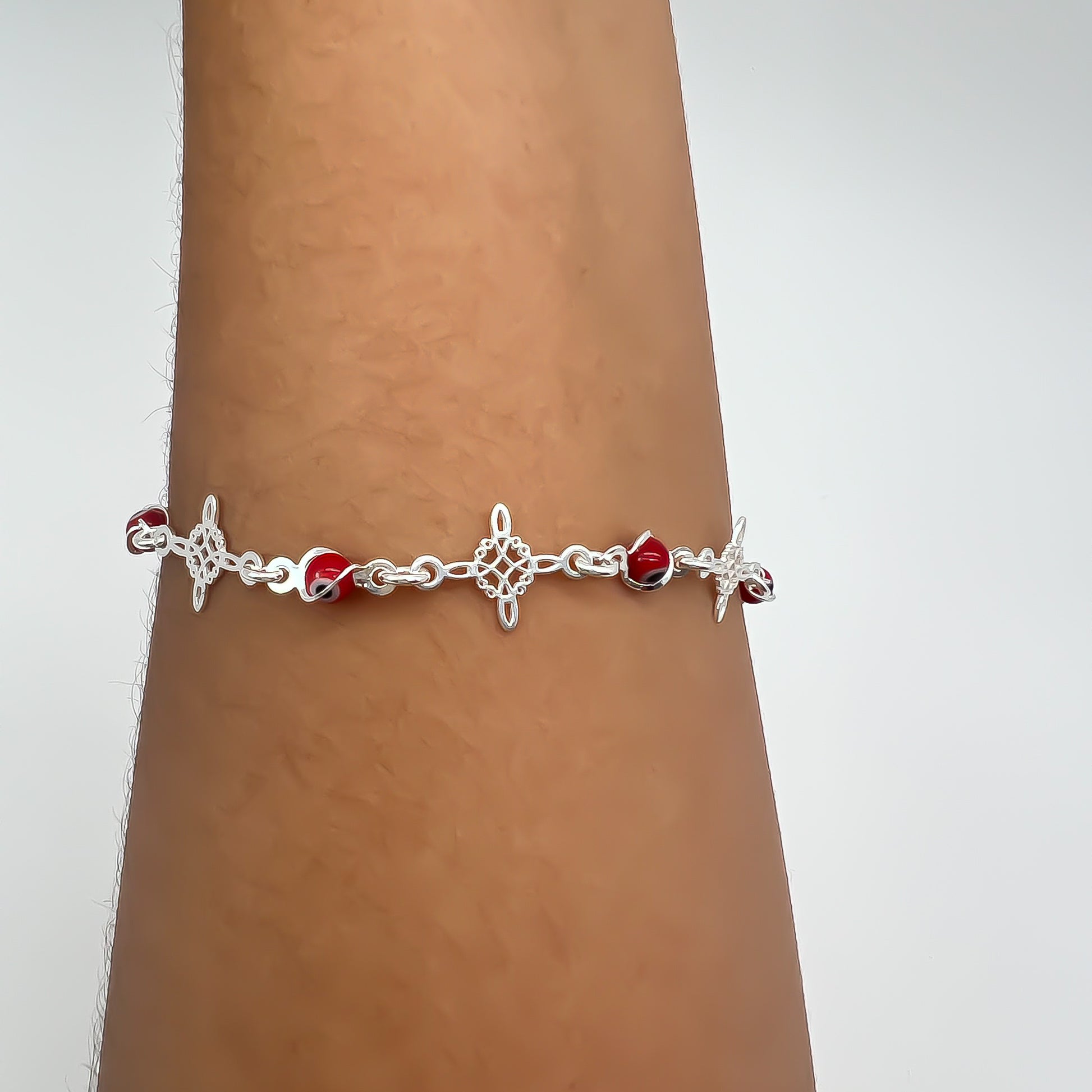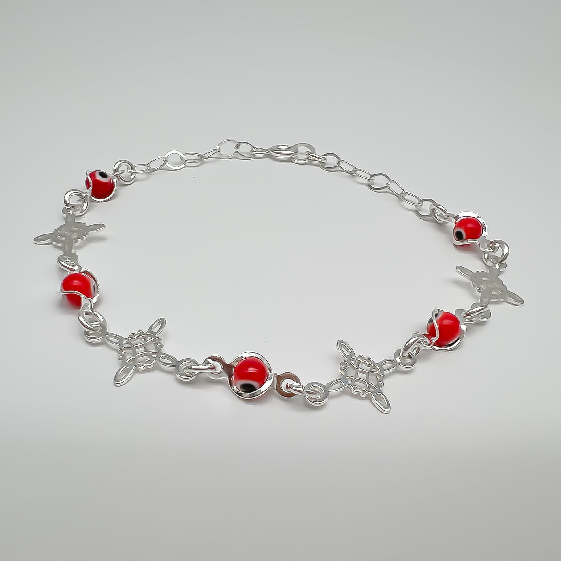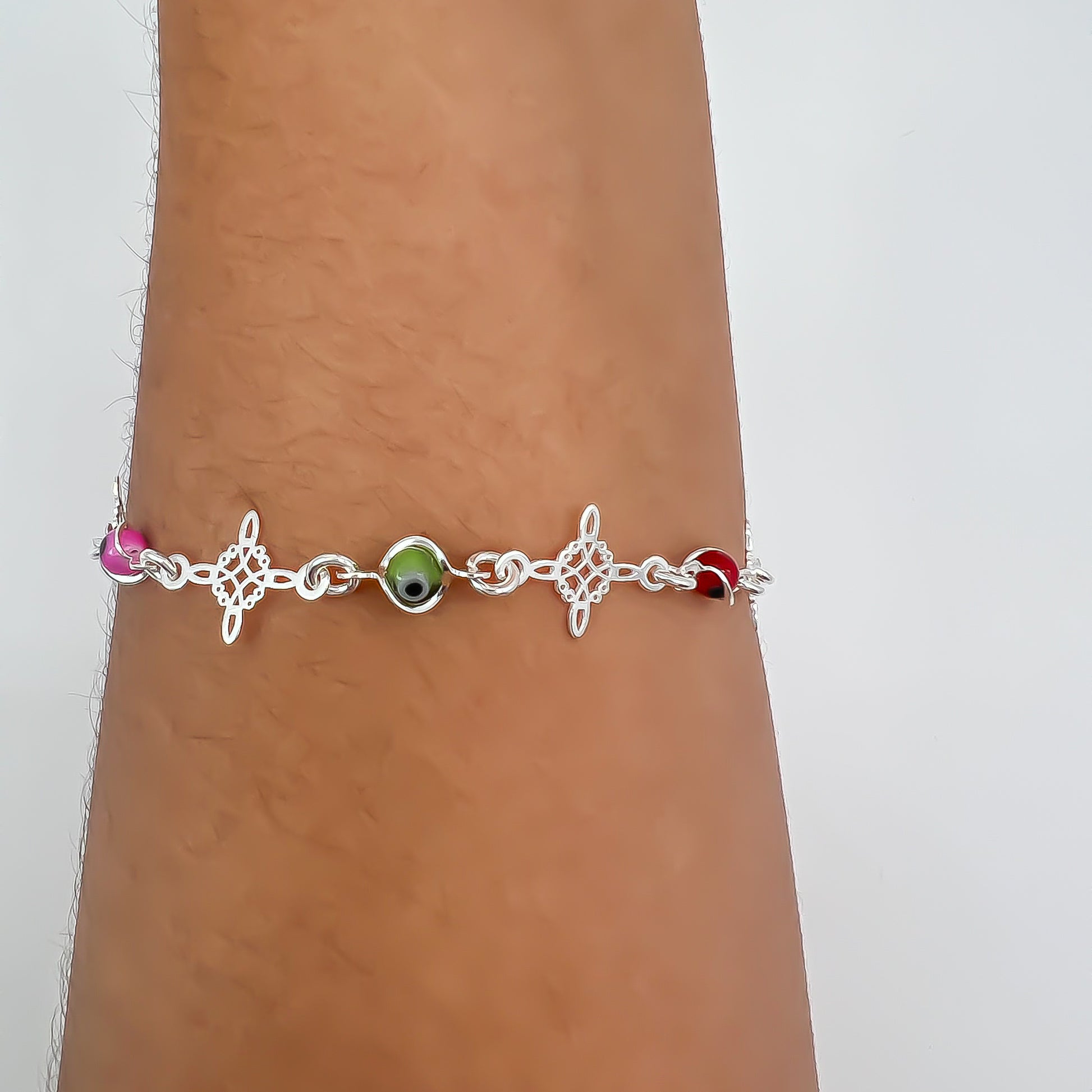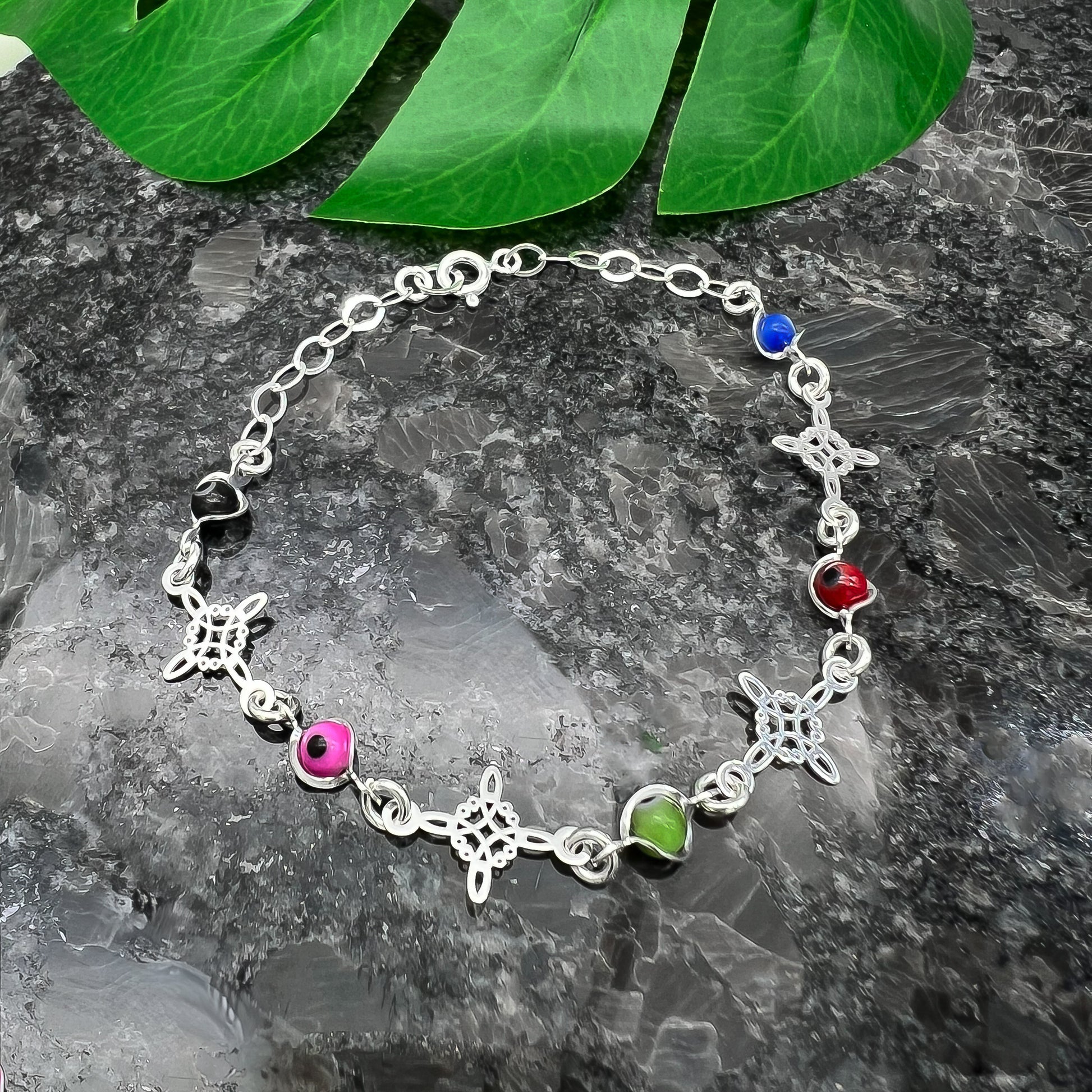 Pulsera de plata nudos de bruja con un largo de 19cms elaborada en Plata esterlina y ojo turco logrado artesanalmente en cristal, una pieza en tendencia y siempre linda.